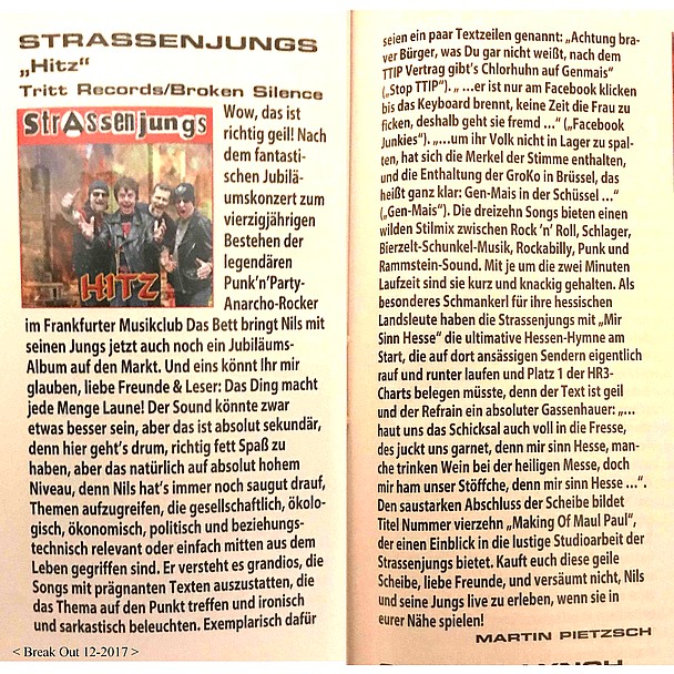 Review zur HITZ-CD im BreakOut-Magazin 12-2017